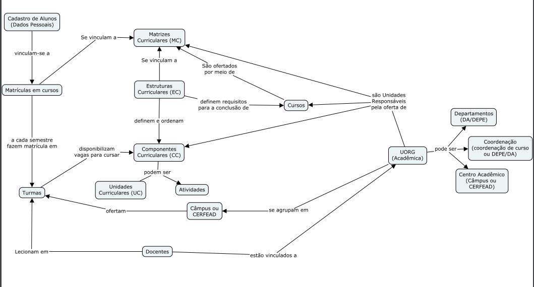 O cadastro do curso é a base do registro acadêmico, define seu nome, Tipo de Curso, Tipo de Oferta, Unidade Responsável (UORG), dentre outras. No IFSC, estamos cadastrando cursos de mesmo nome ofertados por câmpus distintos como cursos distintos, por exemplo, temos 5 cursos de engenharia elétrica, ofertados em 5 câmpus diferentes. O tipo de oferta também caracteriza cursos diferentes, por exemplo, em um mesmo câmpus, temos dois cursos técnicos de edificações, um integrado e outro subsequente.